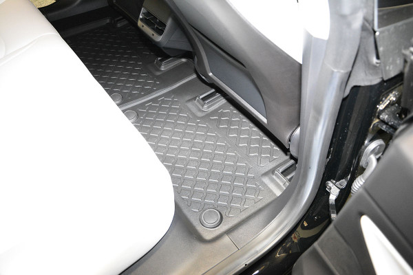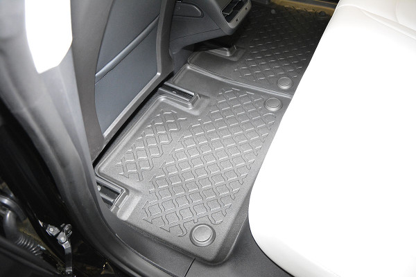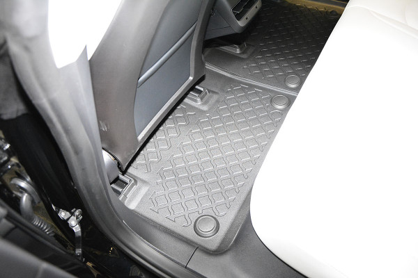 Protezione >  La miscela in termoplastica TPE di alta qualità e la forma a rialzo assicurano una protezione completa. I bordi del set sono alti per prevenire la fuoriuscita di liquidi e della sporcizia, mantenendoli all'interno dei tappetini. Il piano sottostante rimane così asciutto e pulito, eliminando il rischio di cattivi odori e muffe. Designed in Italy, Made in EU. I tappetini sono appositamente progettati per resistere ai raggi UV, alle temperature elevate e ai graffi.