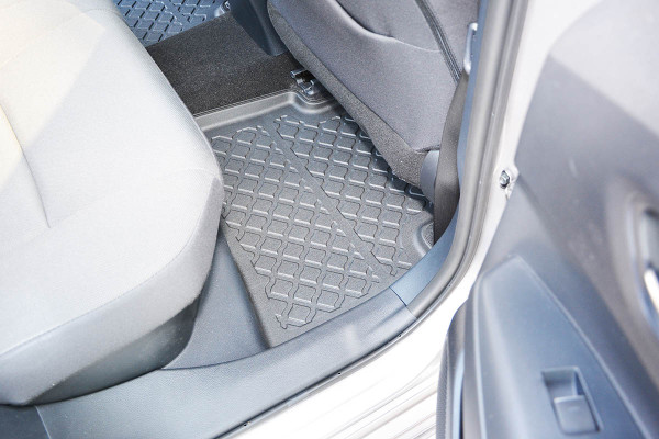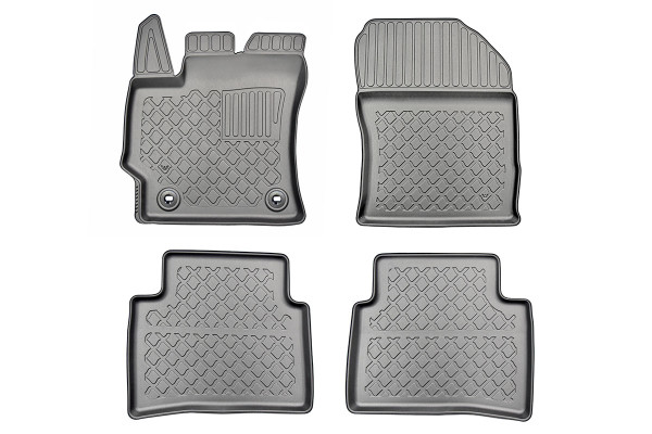 Confort> Il materiale è resistente, non emana cattivi odori e si può riciclare. Il fondo antiscivolo mantiene il set saldamente in posizione, offrendoti un comfort ottimale durante la guida della tua Toyota Corolla XII (E210) Berlina (anche Hybrid) 2019-2024. Se previsto dal costrutture, vengono forniti anche dei sistemi di fisaggio da installare.