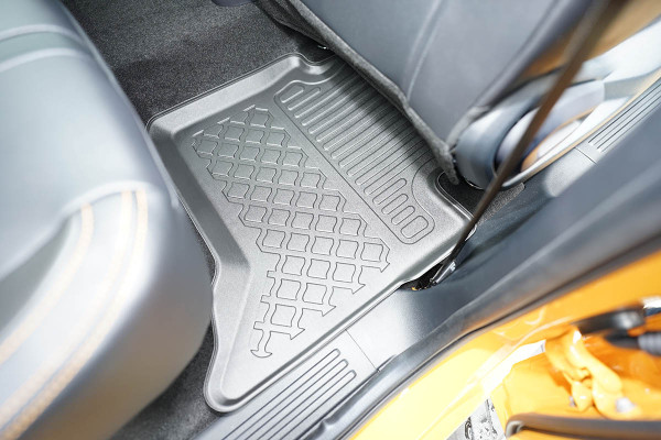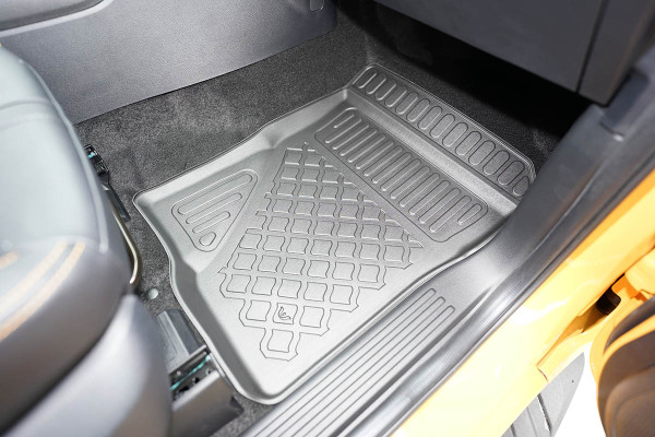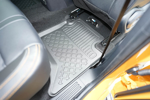Confort> Il materiale è resistente, non emana cattivi odori e si può riciclare. Il fondo antiscivolo mantiene il set saldamente in posizione, offrendoti un comfort ottimale durante la guida della tua Volkswagen Amarok II Double Cab 2023-. Se previsto dal costrutture, vengono forniti anche dei sistemi di fisaggio da installare.