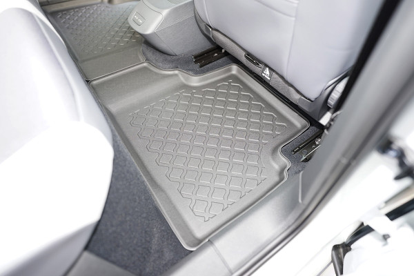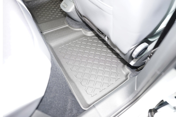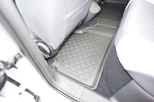 Protezione >  La miscela in termoplastica TPE di alta qualità e la forma a rialzo assicurano una protezione completa. I bordi del set sono alti per prevenire la fuoriuscita di liquidi e della sporcizia, mantenendoli all'interno dei tappetini. Il piano sottostante rimane così asciutto e pulito, eliminando il rischio di cattivi odori e muffe. Designed in Italy, Made in EU. I tappetini sono appositamente progettati per resistere ai raggi UV, alle temperature elevate e ai graffi.