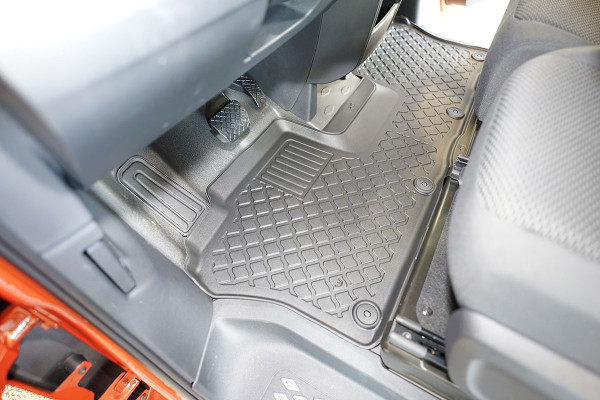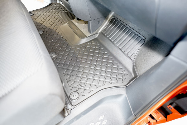 Confort> Il materiale è resistente, non emana cattivi odori e si può riciclare. Il fondo antiscivolo mantiene il set saldamente in posizione, offrendoti un comfort ottimale durante la guida della tua Volkswagen ID.Buzz Van 2022-. Se previsto dal costrutture, vengono forniti anche dei sistemi di fisaggio da installare.
