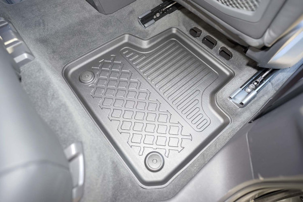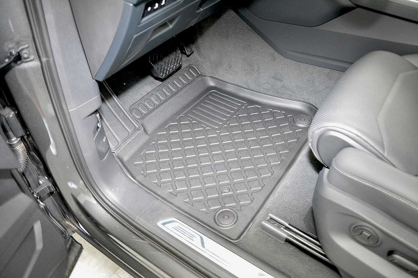 Confort> Il materiale è resistente, non emana cattivi odori e si può riciclare. Il fondo antiscivolo mantiene il set saldamente in posizione, offrendoti un comfort ottimale durante la guida della tua Volkswagen Touareg III 2023-. Se previsto dal costrutture, vengono forniti anche dei sistemi di fisaggio da installare.