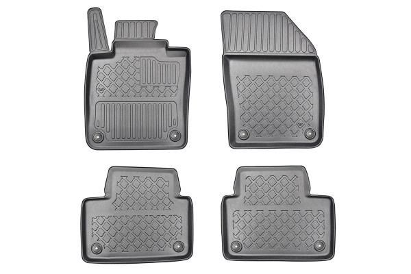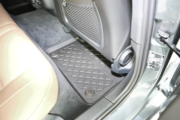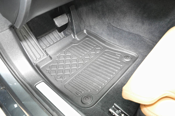 Protezione >  La miscela in termoplastica TPE di alta qualità e la forma a rialzo assicurano una protezione completa. I bordi del set sono alti per prevenire la fuoriuscita di liquidi e della sporcizia, mantenendoli all'interno dei tappetini. Il piano sottostante rimane così asciutto e pulito, eliminando il rischio di cattivi odori e muffe. Designed in Italy, Made in EU. I tappetini sono appositamente progettati per resistere ai raggi UV, alle temperature elevate e ai graffi.
