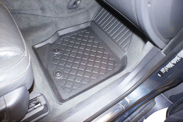 Protezione >  La miscela in termoplastica TPE di alta qualità e la forma a rialzo assicurano una protezione completa. I bordi del set sono alti per prevenire la fuoriuscita di liquidi e della sporcizia, mantenendoli all'interno dei tappetini. Il piano sottostante rimane così asciutto e pulito, eliminando il rischio di cattivi odori e muffe. Designed in Italy, Made in EU. I tappetini sono appositamente progettati per resistere ai raggi UV, alle temperature elevate e ai graffi.