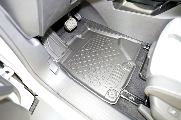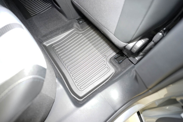 Protezione >  La miscela in termoplastica TPE di alta qualità e la forma a rialzo assicurano una protezione completa. I bordi del set sono alti per prevenire la fuoriuscita di liquidi e della sporcizia, mantenendoli all'interno dei tappetini. Il piano sottostante rimane così asciutto e pulito, eliminando il rischio di cattivi odori e muffe. Designed in Italy, Made in EU. I tappetini sono appositamente progettati per resistere ai raggi UV, alle temperature elevate e ai graffi.