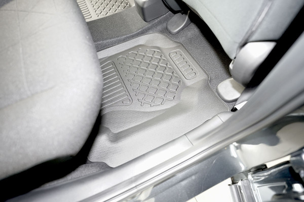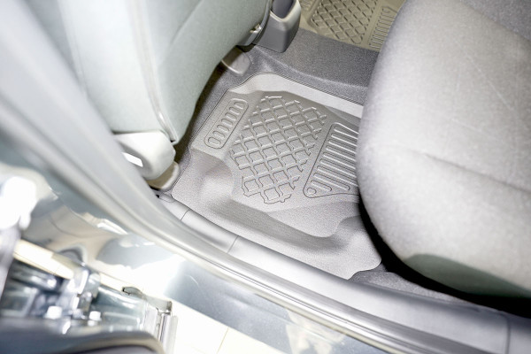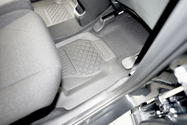 Protezione >  La miscela in termoplastica TPE di alta qualità e la forma a rialzo assicurano una protezione completa. I bordi del set sono alti per prevenire la fuoriuscita di liquidi e della sporcizia, mantenendoli all'interno dei tappetini. Il piano sottostante rimane così asciutto e pulito, eliminando il rischio di cattivi odori e muffe. Designed in Italy, Made in EU. I tappetini sono appositamente progettati per resistere ai raggi UV, alle temperature elevate e ai graffi.