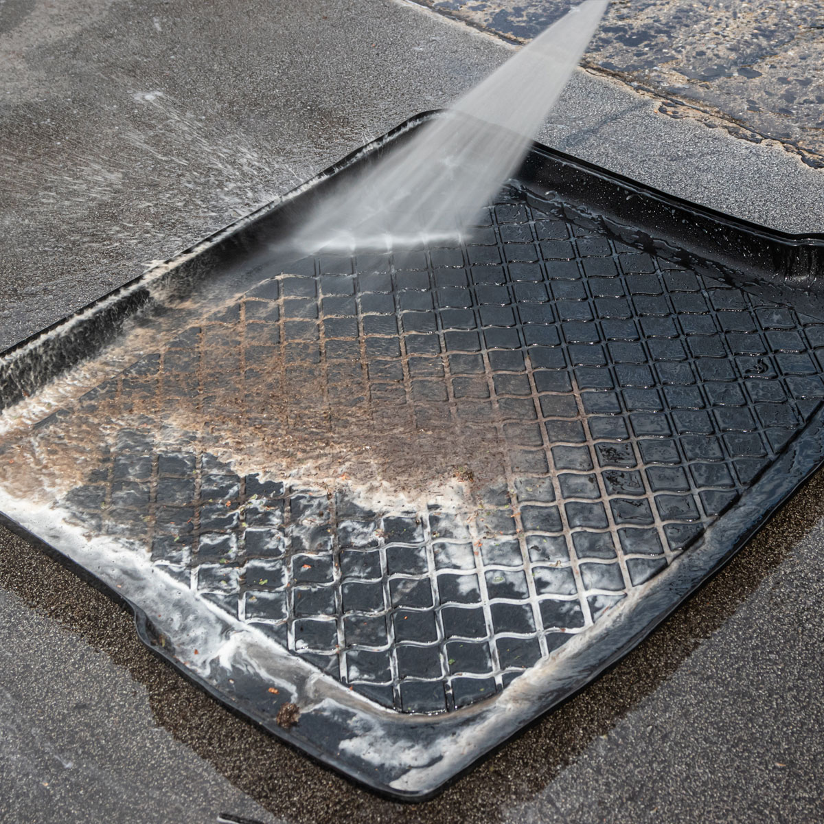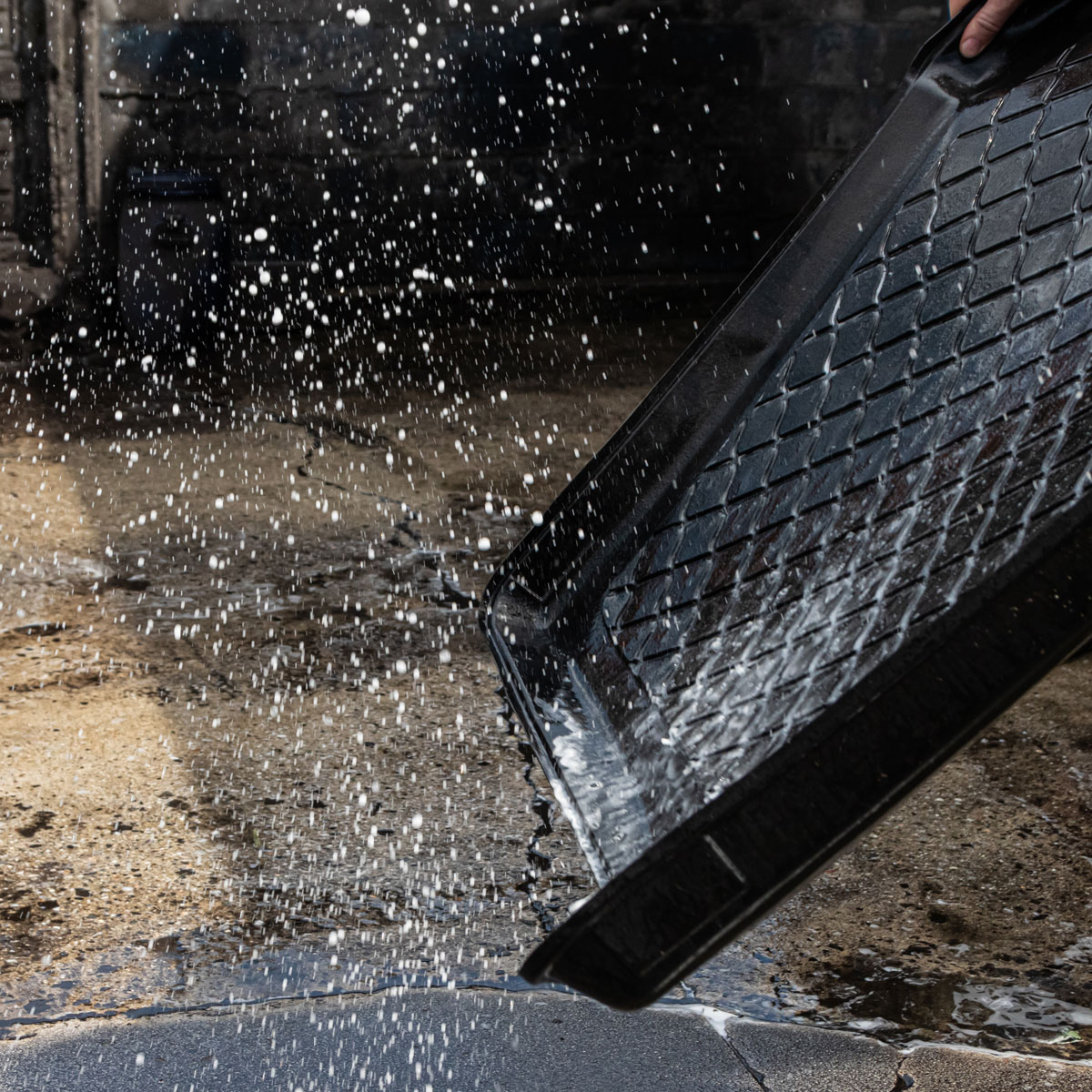 Pulizia > ha i margini alti 5 centimetri per trattenere i liquidi e le sostanze che potrebbero danneggiare il pianale in moquette, come oli e sostanze chimiche. Con un getto d’acqua torna pulita.